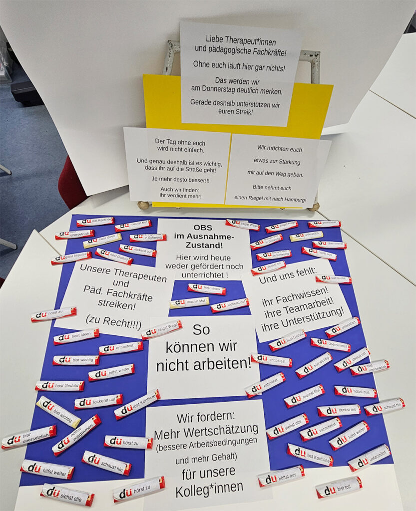 So geht es auch… verbeamtete Kolleg*innen unterstützen wertschätzend und solidarisch ihre tarifbeschäftigten Streikenden.