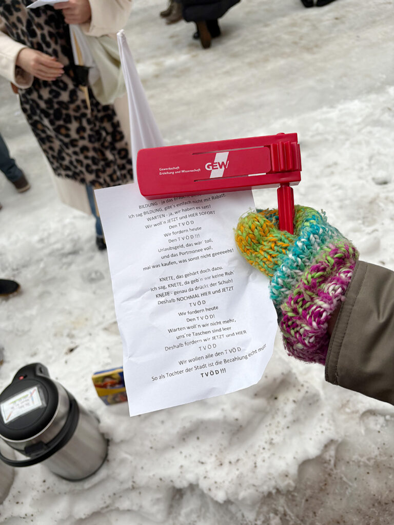 Bitte tragt euch am Tag des Streiks in die Streikliste sein. Ihr könnt dies beim GEW-Infostand vor Ort machen oder hier: https://www.streikliste.de/