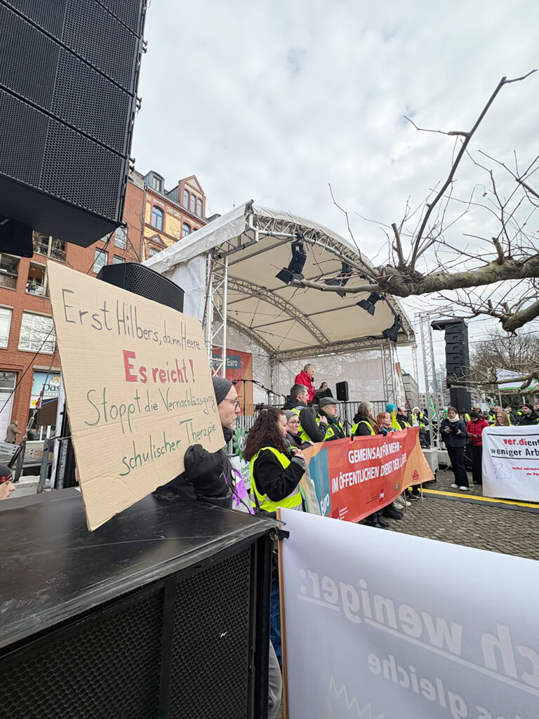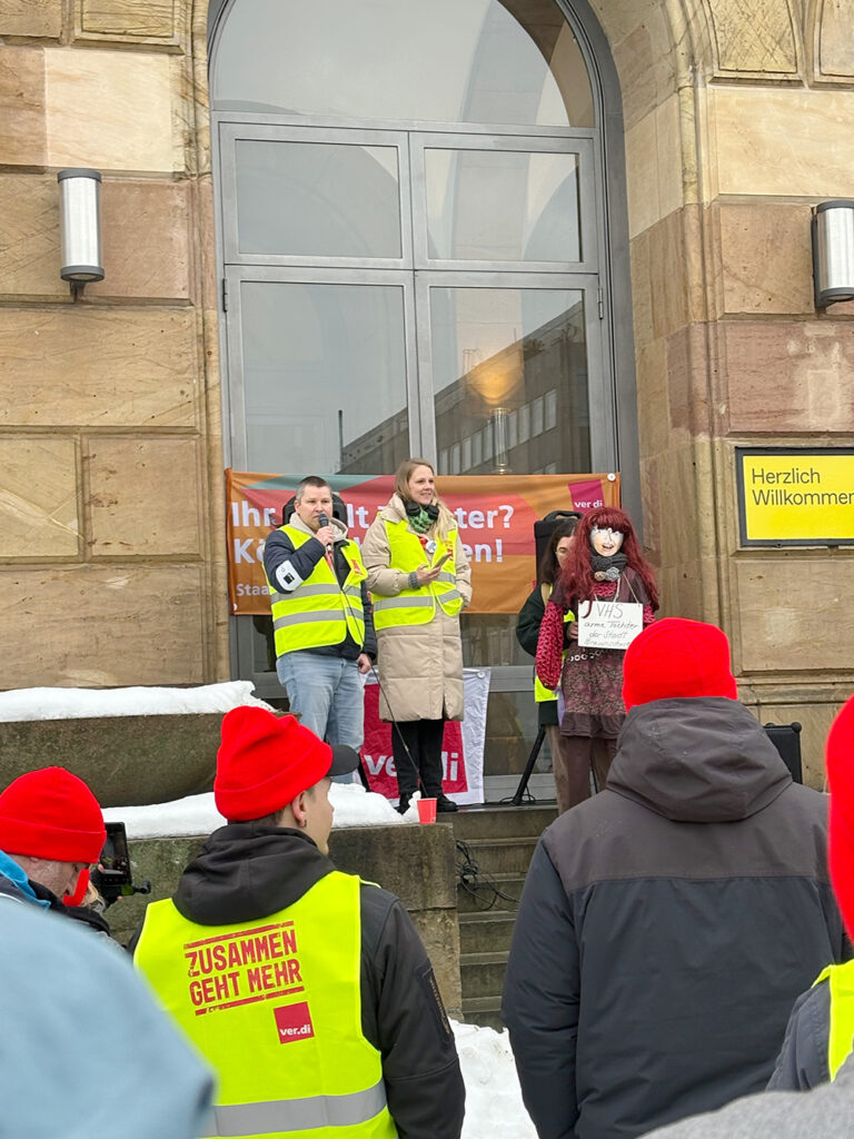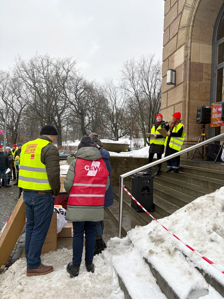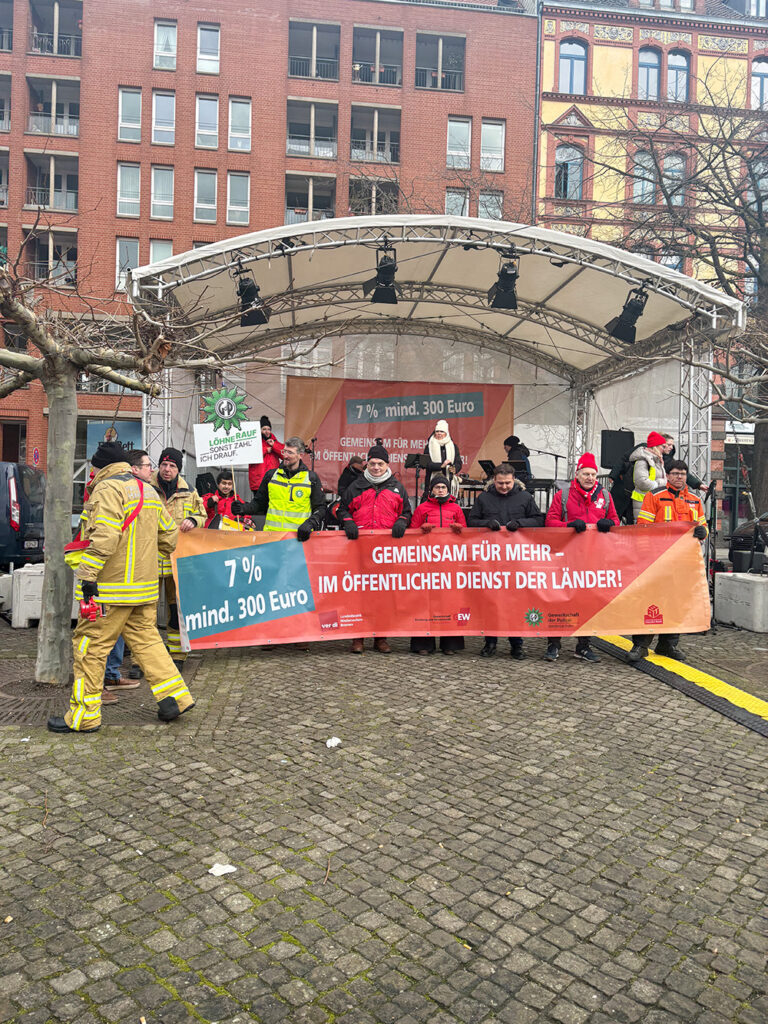 Die GEW hat zusammen mit den anderen Gewerkschaften des öffentliches Dienstes ihre Forderungen für den Länder-Tarifvertrag am 3. Dezember 2025 den Arbeitgebern präsentiert: Wir fordern 7 % mehr Gehalt, mindestens 300 Euro. Wir fordern endlich einen Tarifvertrag für studentische Beschäftigte. Diese und andere Forderungen hat die Arbeitgeberseite scharf zurückgewiesen und kein Angebot ihrerseits vorgestellt. Die Taschen seien leer, es gibt nichts. Dies ist aber falsch. Die Steuereinnahmen der Länder steigen stärker als die Inflation, der nds. Landeshaushalt hat in den letzten Jahren einen Milliardenüberschuss gehabt. Es kommt auf den politischen Willen an, Geld für den öffentlichen Dienst auszugeben und unsere Arbeit angemessen zu bezahlen.