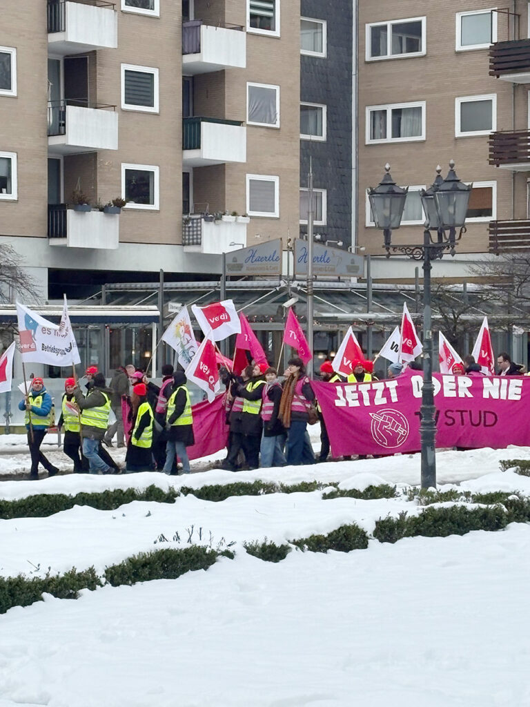 Das Verhalten der Arbeitgeber zeigt, dass sie dazu nicht freiwillig bereit sind. Also müssen wir den Druck erhöhen. Wir müssen öffentlich zeigen, dass wir viele sind, dass wir die besseren Argumente haben und dass wir es verdient haben.