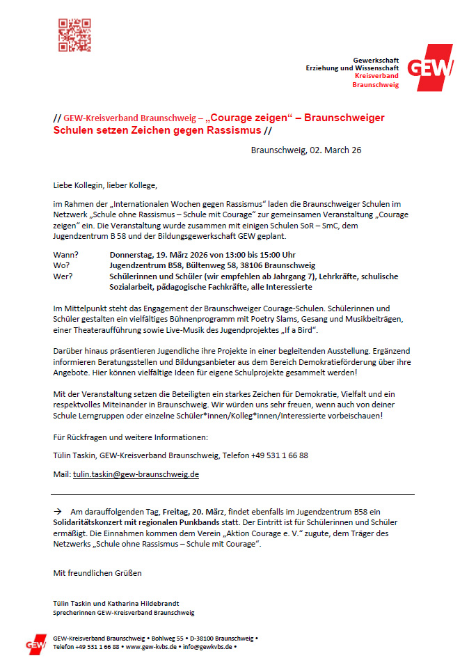 Wie kann ich mich in Schule einbringen? Um Demokratiebildung sowie den rechtlichen Hintergrund für Lehrkräfte durch Juristin Heidemarie Schuldt ging es am Samstag, den 15.03.2025 bei der #Buntstadtkonferenz: „Jetzt erst recht! Für Demokratie-gegen Hass und Hetze!“ Folgender Link: https://braunschweig.buntstadt.de/