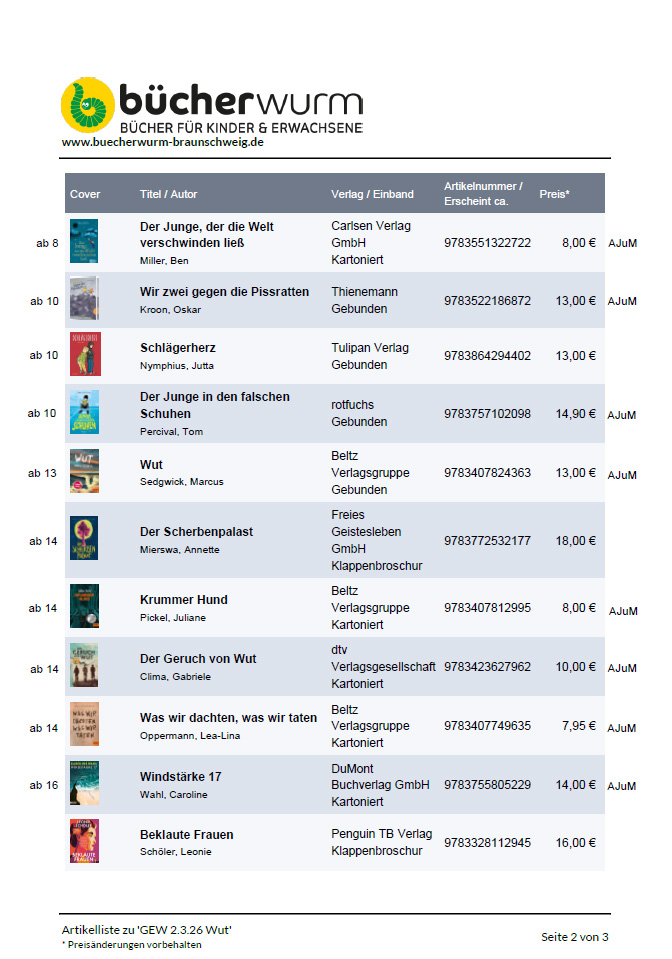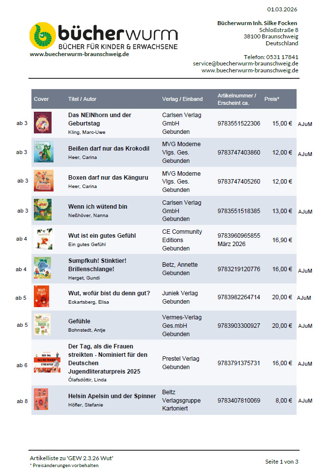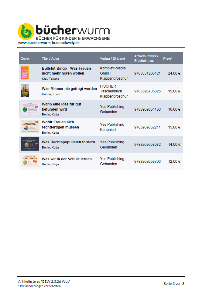 Aktion Bücherwurm zum Internationalen Frauentag Thema „WUT“
