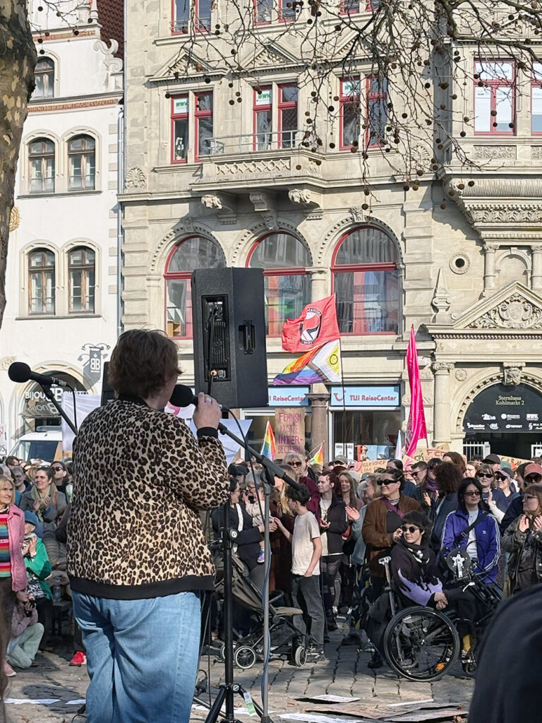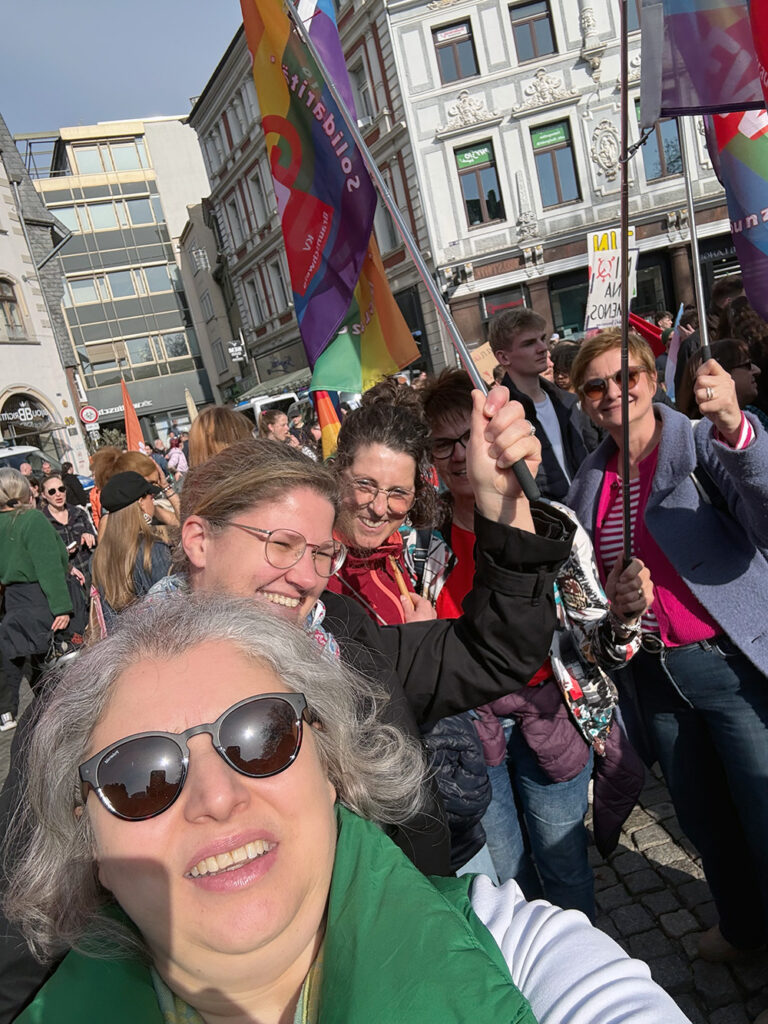 Das Motto des diesjährigen „Internationalen Frauentages“ war das „Ende der Bescheidenheit“. Bei strahlendem Sonnenschein gab es von Frauen für Frauen einen Überblick von 24 Institutionen, in denen Frauen organisiert und engagiert sind. Danach ging es für unsere Frauenrechte auf die Straße.
