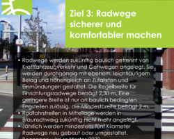 Infolge eines erfolgreichen Bürgerbegehrens ist in 2020 in Braunschweig erstmals ein Schritt gemacht worden auf eine bessere Radverkehrsinfrastruktur zu: Das Bürgerbegehren für ein verbessertes Fahrradfahren in der Stadt mündete in einen Stadtratsbeschluss – in den Ratsbeschluss „Braunschweigs Weg für einen besseren Radverkehr“. Er beinhaltet sieben Kernziele mit 25 Maßnahmen, die in der Stadt umgesetzt werden sollen.
