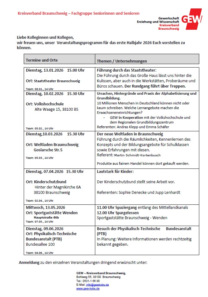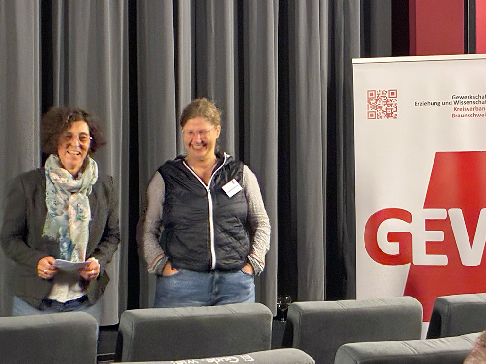 Im Anschluss ging es weiter mit der JHV 2025: einem Grußwort des Bezirksvorsitzenden Kai Pawletko, dem Kassenbericht, kontroversen Diskussionen und u. a. den Wahlen des Vorstandes des GEW-Kreisverbandes BS. Es folgten Informationen zu den anstehenden Tarifverhandlungen 2025/2026: Liebe Beamt*innen zeigt euch solidarisch und unterstützt eure Tarifkolleg*innen! Denn ihr profitiert vom Ergebnis, das Angestellte erstreiken!